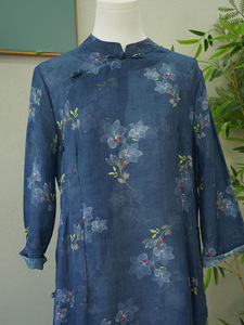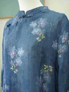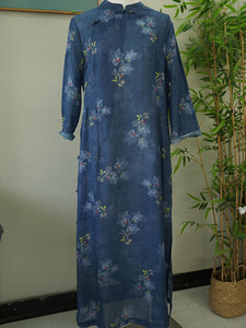 夏季新款 复古苎麻数码印花立领单层连衣裙改良旗袍裙262032
