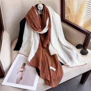 新款日系棉质长巾渐变色撞色拼接棉麻围巾女秋冬休闲百搭舒适披肩