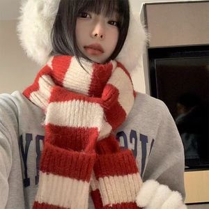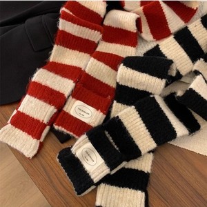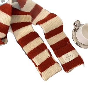 日系撞色条纹围巾女冬季韩版百搭简约复古针织围巾保暖防寒围巾潮