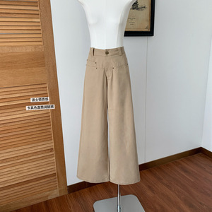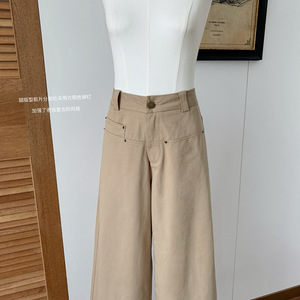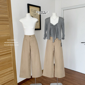波士顿质感*莱赛尔卡其色直筒休闲裤女秋水洗复古阔腿裤