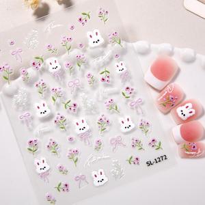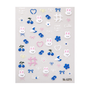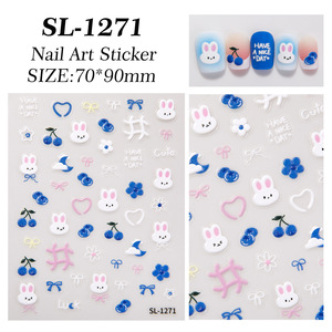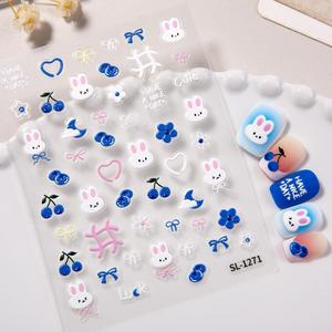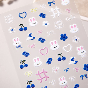 可爱蓝莓兔子美甲贴纸5D浮雕立体多巴胺小白兔diy指甲贴纸 SL款