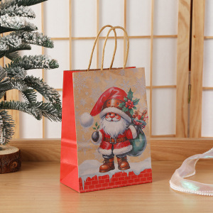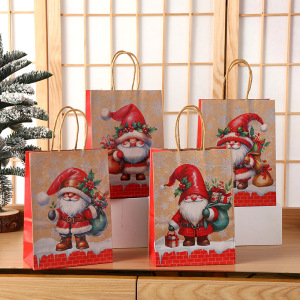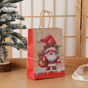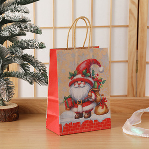 圣诞节手提袋牛皮纸袋服装购物包装袋卡通圣诞老人印花礼品袋批发