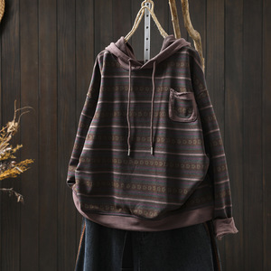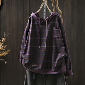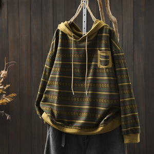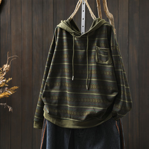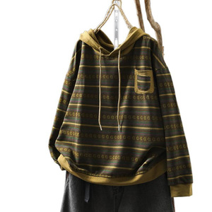 卫衣女款2025新款秋季连帽条纹炒色碎花设计感口袋宽松巨好看上衣