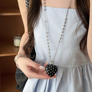 原创渣渣Yo韩系ins小众设计感黑色波点蝴蝶结项链女简约百搭长链