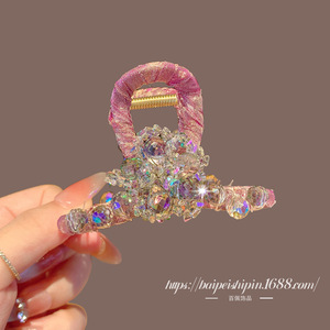 韩国闪钻水晶花朵发夹女后脑勺盘发抓夹高级感鲨鱼夹子发卡头饰品