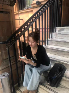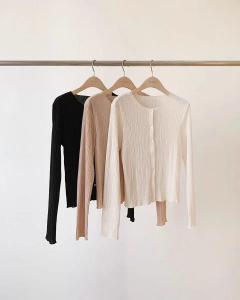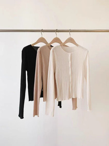 现h2025秋季新款韩版OU*CE纯色褶皱设计感圆领单排扣长袖开衫上衣