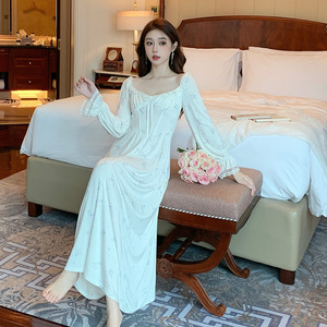 法式公主风碎花长袖睡裙女春夏季高级感收腰气质仙女风家居连衣裙