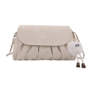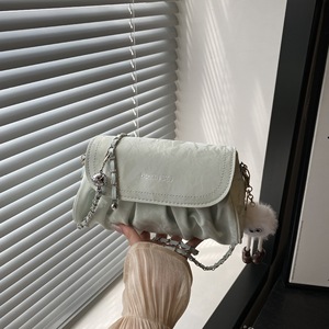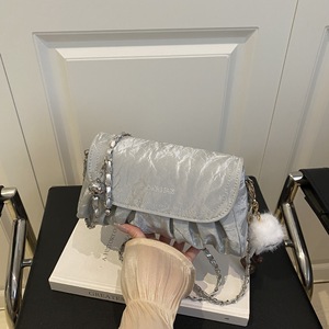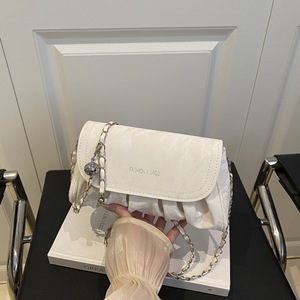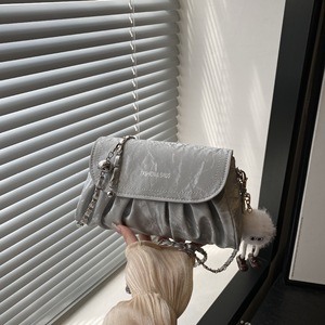 2025新款跨境高级感褶皱小包包时尚百搭链条斜挎包简约小众单肩包