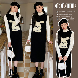 孕妇秋冬韩版时尚宽松毛衣背心裙+针织打底衫甜美时尚显瘦两件套