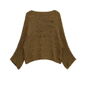 E4TY-1329一字领长袖宽松针织衫2025秋季新款法式慵懒风套头上衣