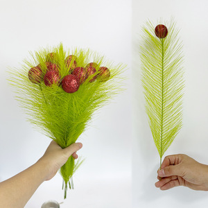 圣诞树装饰家居亚马逊绿色格林奇红球潘帕斯精灵插枝工艺品