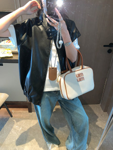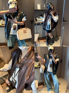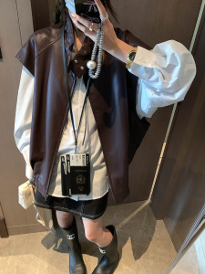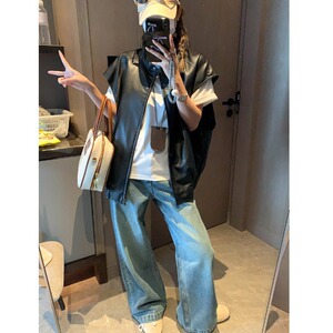 摩且 摩登加分项 廓形感复古机车立领PU皮坎肩马甲外套 MQ0718
