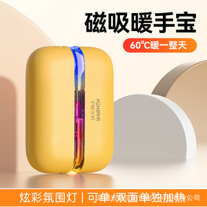 跨境新款迷你炫彩透明数显磁吸分体式暖手宝USB充电暖手宝二合一