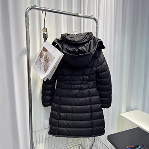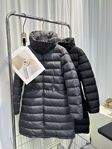 跨境外贸M家爆款正确版本两色现货高品质中长收腰连帽羽绒服外套
