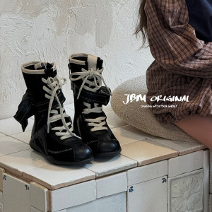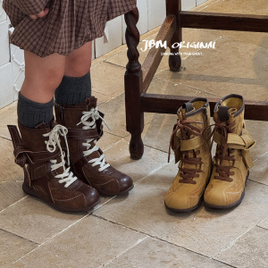 JBM正品批发秋冬季新款小香风女童中筒靴儿童复古皮靴中大童靴子