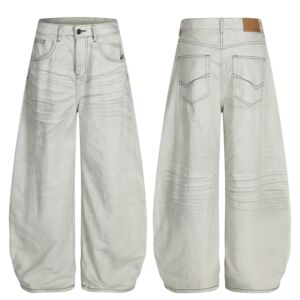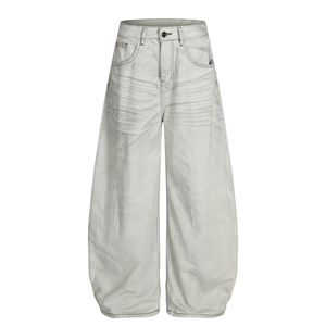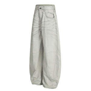世阔FX083 美式复古水洗脏旧白弯刀牛仔裤女街头宽松百搭堆积感裤