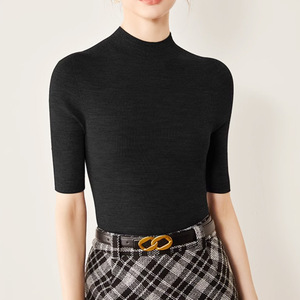 18针精纺可机洗100羊毛针织衫女中袖春扬子纱半高领修身打底衫女