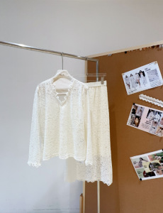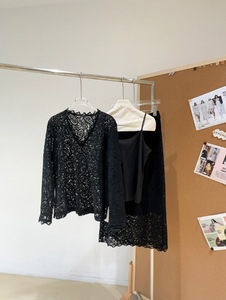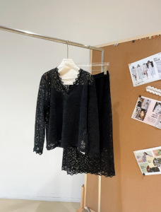 南油法式气质时尚V领蕾丝上衣高级感别致半身裙套装原创设计女装