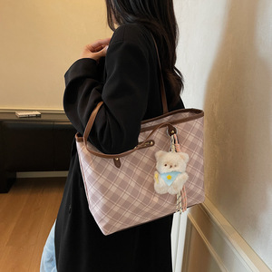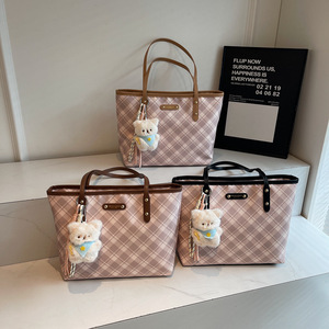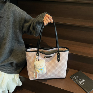 上班通勤大容量托特包女2025夏季新款复古时尚子母单肩包格子包包