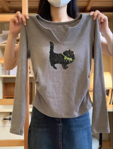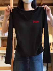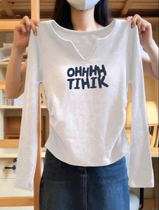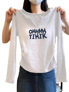 2025秋季新款正肩白色长袖t恤女内搭设计感小众纯棉打底衫小上衣