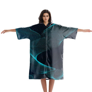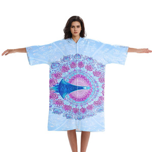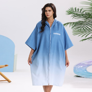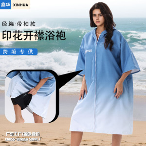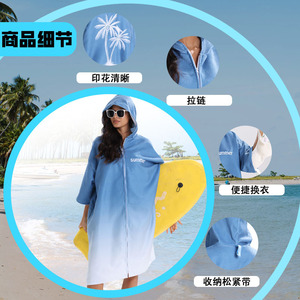 亚马逊经编中袖带拉链成人斗篷浴巾连帽披风可穿浴巾游泳换衣浴袍