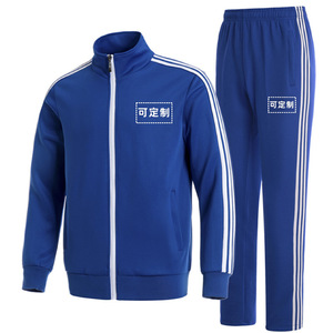 厂家直销三条杠运动套装男女团体服定制运动会卫衣立领开衫两件套