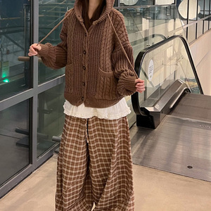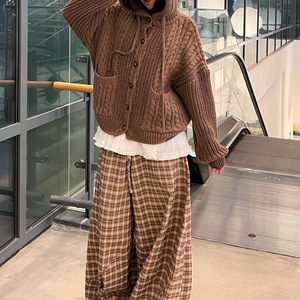 77lin美式复古麻花连帽毛衣开衫女5秋冬慵懒风针织衣外套ins