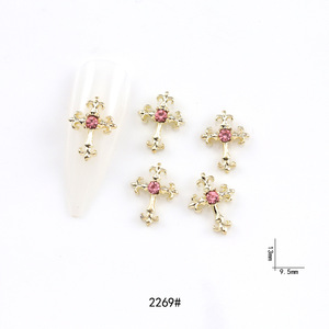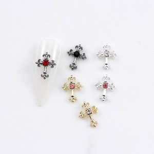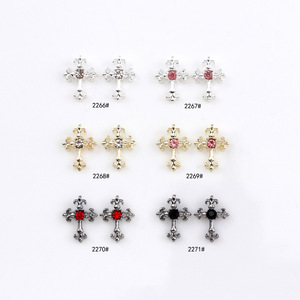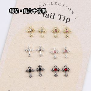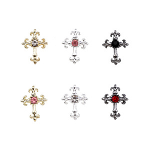跨境新款十字架美甲克罗心饰品暗黑复古立体镶钻十字架diy指甲钻