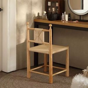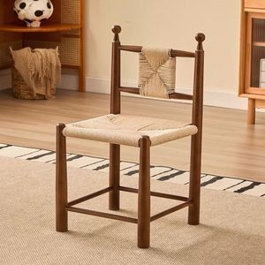 设计师中古实木编藤餐椅法式复古风草藤书桌椅民宿咖啡厅休闲椅子