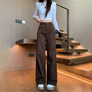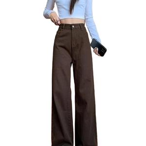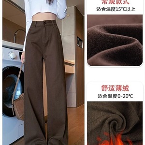 美拉德棕色阔腿牛仔裤女秋冬高腰宽松显瘦大码加绒垂感拖地直筒裤