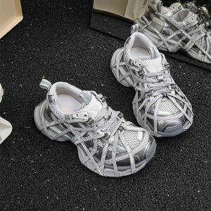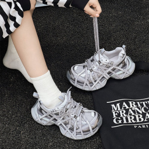 真皮厚底老爹鞋女ins潮2025秋季新款复古百搭增高轻便休闲运动鞋