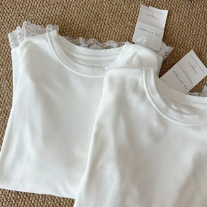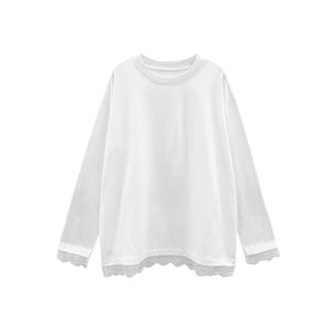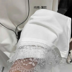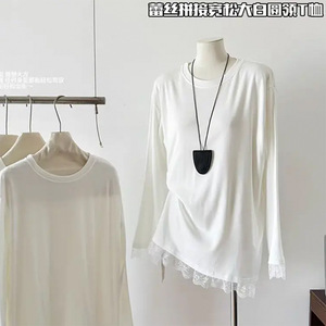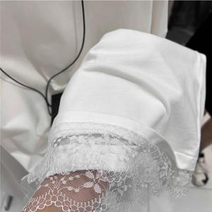 白色内搭打底衫女纯棉秋款遮屁股中长款t恤蕾丝花边上衣配鲨鱼裤