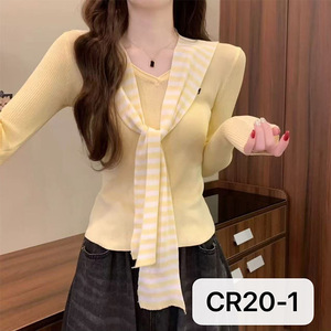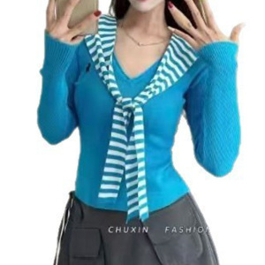 韩系披肩两件套v领针织衫秋季穿搭气质内搭长袖上衣女毛织衫工厂