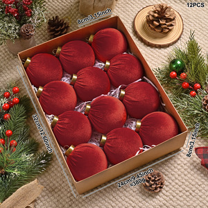跨境新款手工植绒圣诞吊球配件高级感天鹅绒圣诞节圣诞球挂件装饰