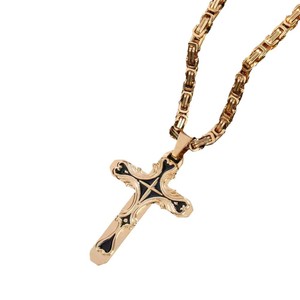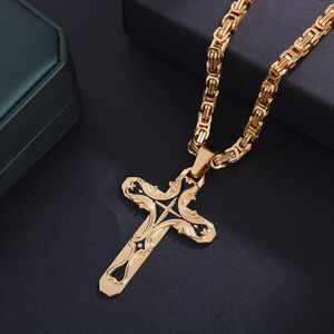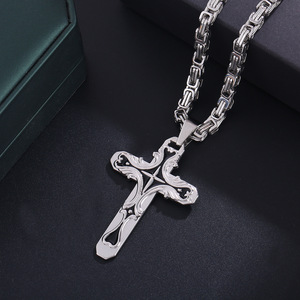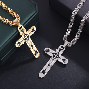 新款跨境个性风潮男士吊坠项链十字架吊坠项链不锈钢帝王链