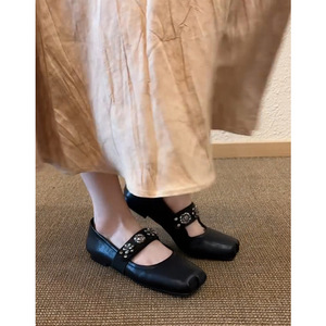 羊皮版~法式复古方头一字带芭蕾鞋女新款百搭平底玛丽珍单鞋