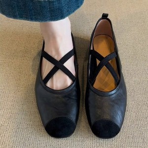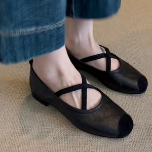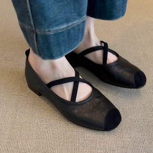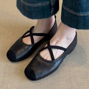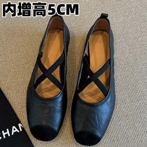 超软小羊皮复古法式内增高单鞋女芭蕾鞋浅口晚晚鞋交叉带玛丽珍鞋