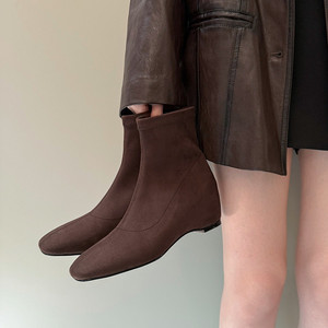 内增高瘦瘦靴女弹力靴子秋冬新款方头中跟韩版包腿女弹力短靴女靴