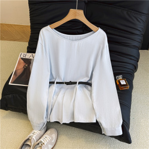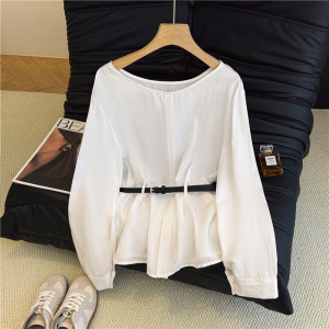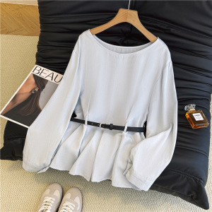 广州十三行高货爆款~百搭皱褶长袖衬衫女设计感带腰带显瘦上衣潮