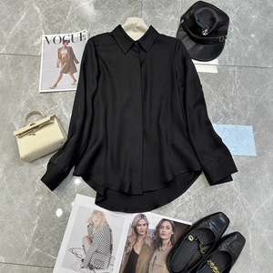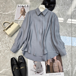 四色羊毛混纺面料简约优雅纯色基础款单排扣秋季长袖衬衫百搭上衣