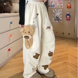 跨境黑色抽绳刺绣休闲裤子2025秋季新款女小个子宽松直筒拖地裤