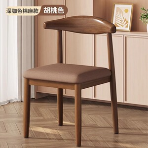 餐厅靠背椅子仿实木餐桌椅软包加厚家用新款极简餐凳木餐椅牛角椅
