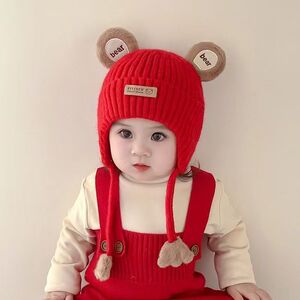 宝宝帽子秋冬季男女童针织毛线帽可爱男孩保暖儿童冬天婴儿护耳帽
