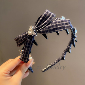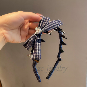 藏青格子爱心发箍