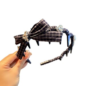 韩国甜美格纹蝴蝶结闪钻爱心带齿发箍女高级感甜美外出百搭发卡