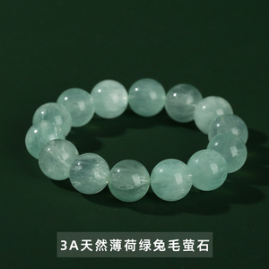 7A纯天然薄荷绿拉丝兔毛萤石手串圆珠顺发羽毛萤石手串送礼礼物