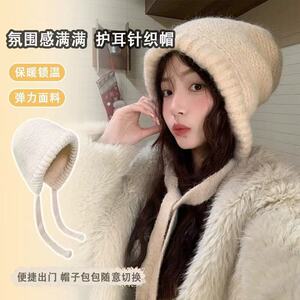 可当包包的针织帽子女冬季新款毛绒巴拉克拉法帽保暖护耳毛线帽女