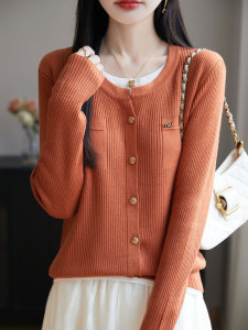 【厂家直供】秋季新款时尚假两件圆领针织女士毛衣百搭短款上衣潮