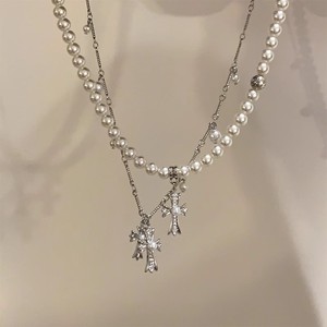 美式辣妹配饰珍珠十字架双层叠戴项链女高级感轻奢小众锁骨链颈链