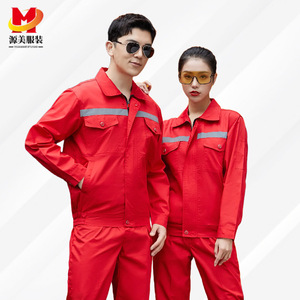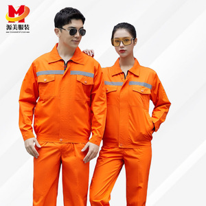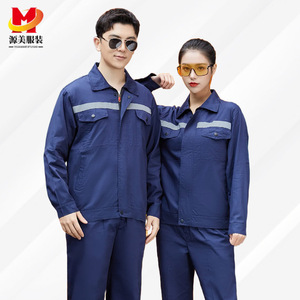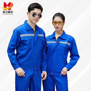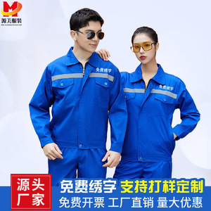 夏季长袖工作服套装男订制劳保服薄款透气工厂车间反光工程服定制